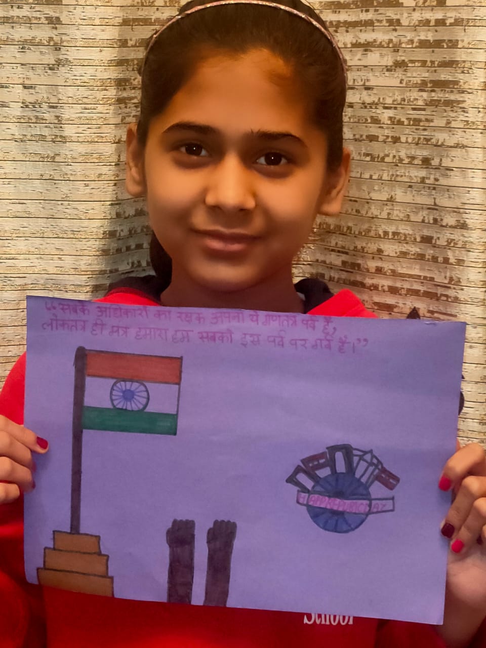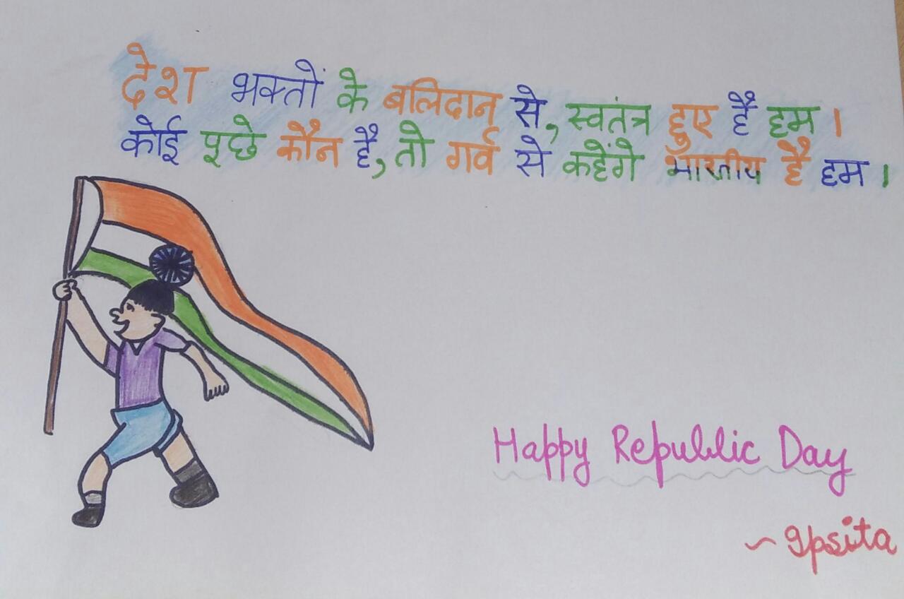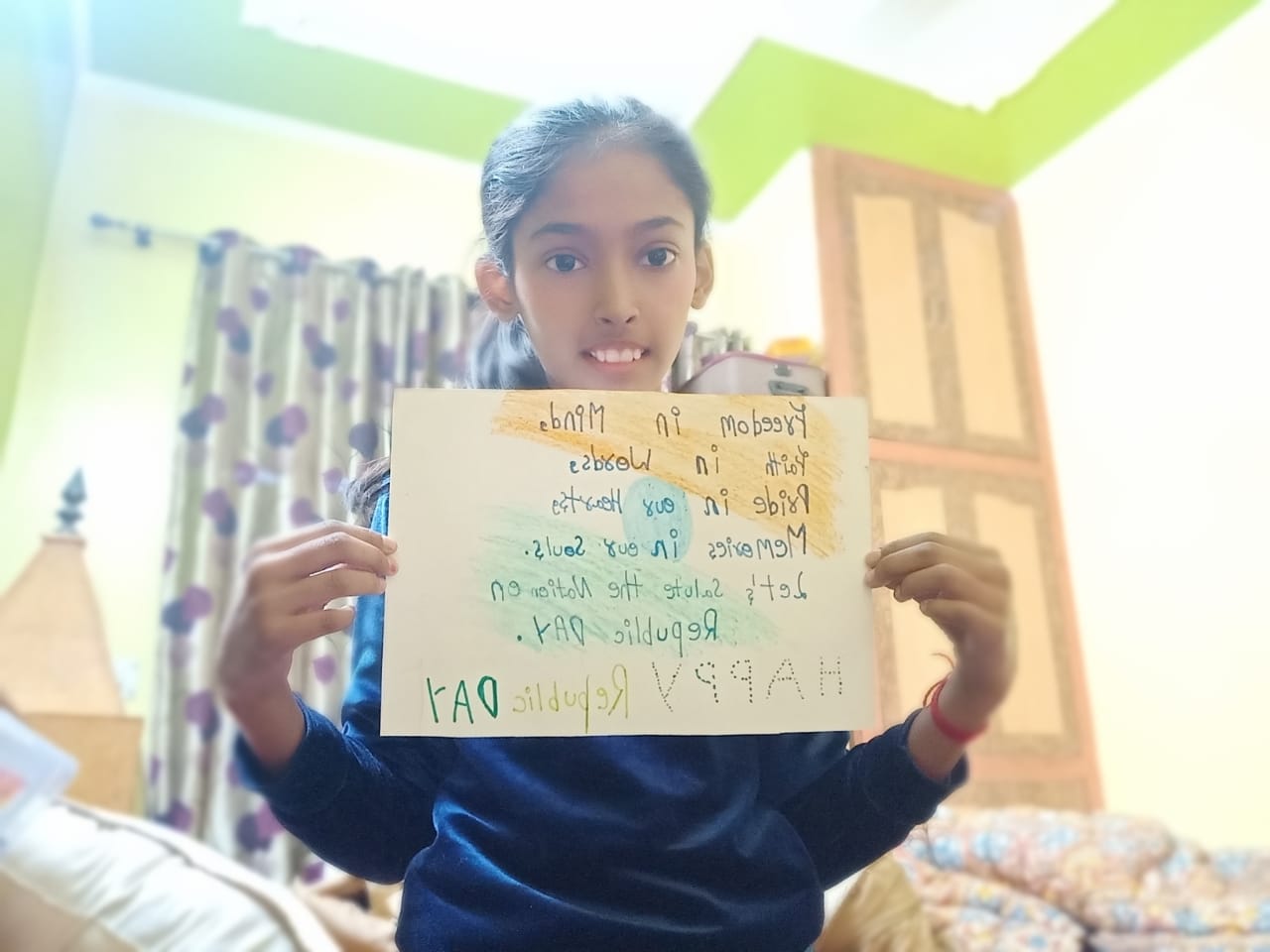 Glimpses of online Republic Day celebrations at Emerald International School 2020-21 Each year, 26th January is a day on which every Indian heart fills up with patriotic fervour and immense love for motherland. The 72nd Republic Day was celebrated in all its solemnity and grandeur at Emerald International School. The students of Sparsh, Jigyasa and Manthan wing took pride in glorifying and celebrating the spirit of unity and brotherhood through various online activities like kite making and slogan writing .The students pledged themselves to uphold the honour and integrity, diversity and uniqueness of our Indian culture.
